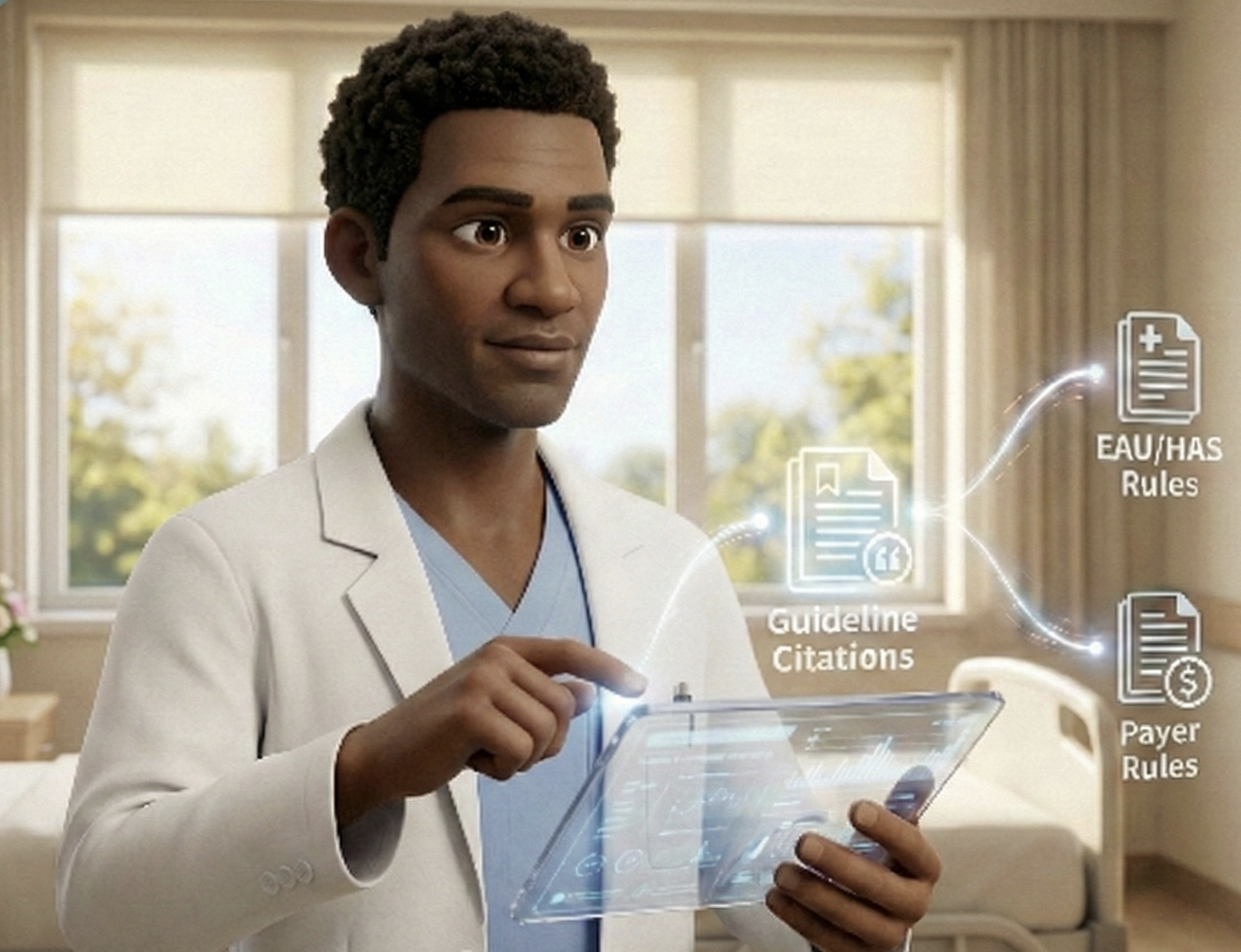Through a deep collaboration between clinicians and AI engineers, we provide continuous alignment between patient records and the latest scientific guidelines. We eliminate decision-making blindspots and empower physicians with clinical certainty, allowing them to focus on what matters most: patient care, backed by a secure and high-quality practice.