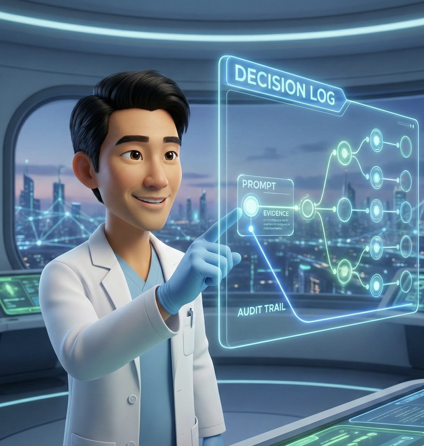 It does not determine whether a diagnostic is right or wrong, does not establish clinical truth, and does not replace expert judgment. It audits how decisions are justified versus appropriate clinical guidelines.